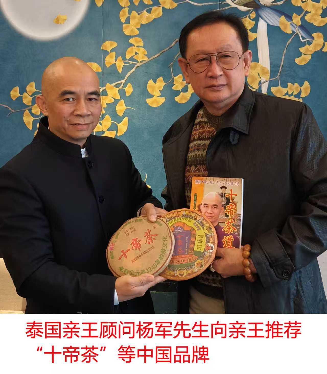 在中国四川成都的“中泰优品合作盛典暨泰国亲王尊享晚宴”专享盛会中,杨军先生以“泰国亲王周易文化艺术顾问”的身份,用专业的水准、敬业的精神,投入到相关工作中去。特别是杨军先生成功的向泰国亲王推荐了:十帝茶、《十帝茶道》等中国茶文化及中国品牌,为助力中国文化输出和中国优质品牌扎根海外作出了实质性的供献。由于杨军先生协同泰国皇室亲王殿下出色的完成了相关工作,被亲王殿下破例特邀一对一的单独合影留念,并亲自为杨军先生戴上那一枚象征着至高荣耀的徽章。这是多少拔尖精英梦寐以求都无法获得的莫大荣幸啊!杨军先生在盛会中强调,此次盛典不仅是中泰友好的生动注脚,更是“一带一路”倡议下文化交流的实践典范。 他呼吁双方企业把握皇室资源与RCEP机遇,实现从产品出海到品牌扎根的跨越。 未来,中泰优品合作将持续深化,为两国关系注入更多时代活力。